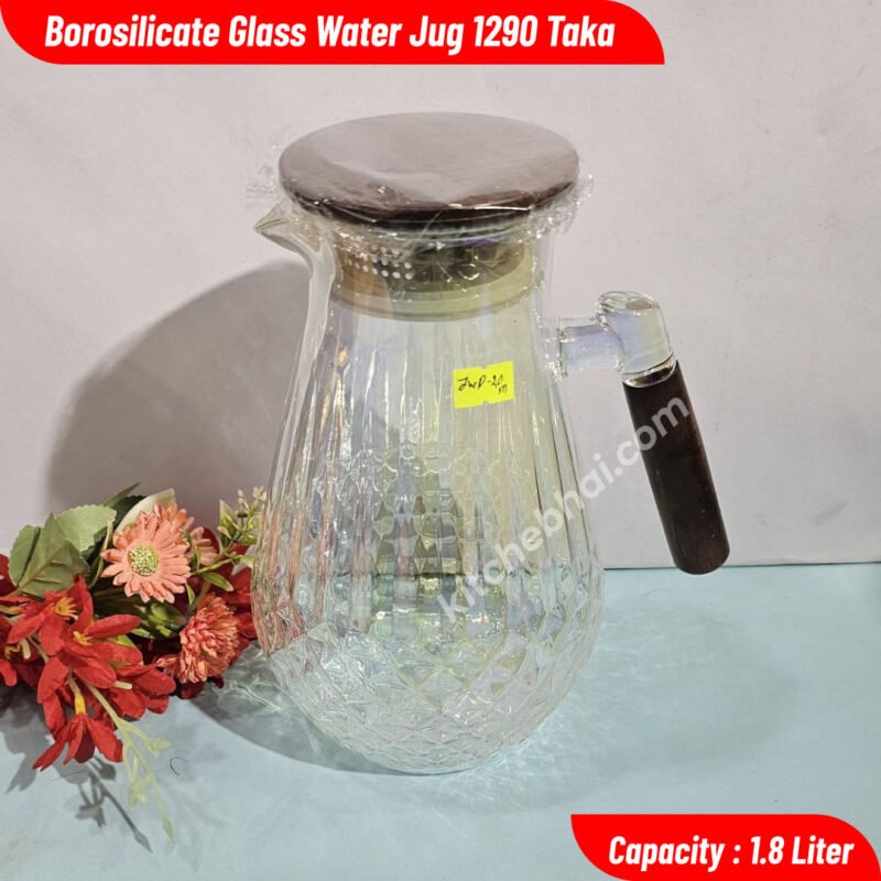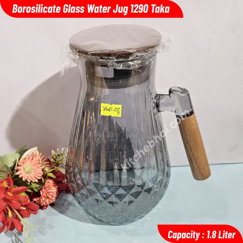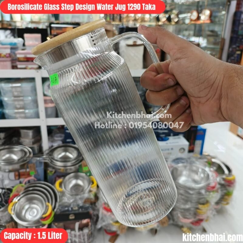 Emboss Glass Water Bottle With Handle-1000ml