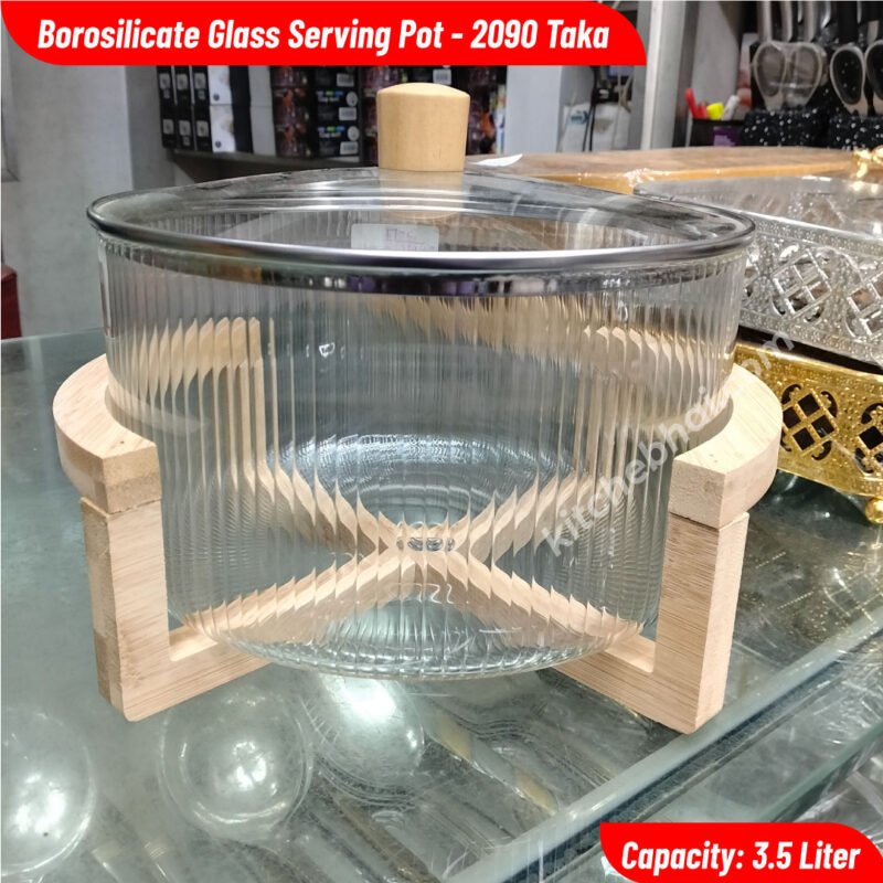 Borosilicate Glass Sarveware-Serving Pot with Lid- 3.5 Liter