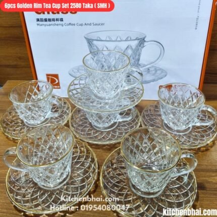 Premium Tea Cup Set- 6 Pcs Set – Clear Top Golden Rim