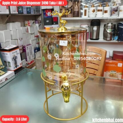 Apple Print Glass Juice Dispenser-3.6 Liter (AH)