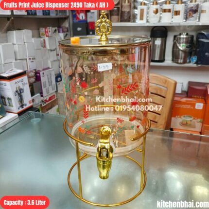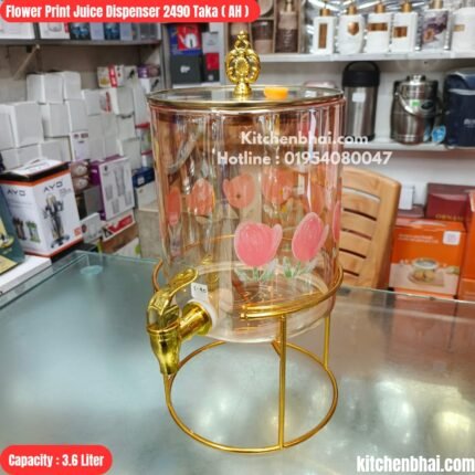 Flower Print Glass Juice Dispenser-3.6 Liter (AH)