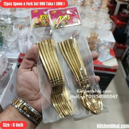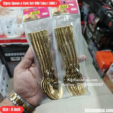 Stainless Steel Golden Spoon & Fork 12 Pcs Set-AYD-816-SMH