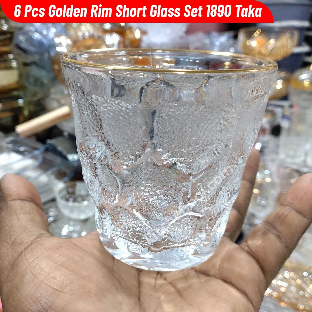 6 Pcs Glass Set -Golden Rim Short Glass Set
