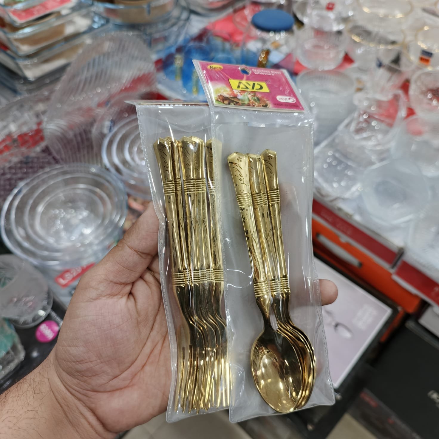 Stainless Steel-Golden-Spoon & Fork 12 Pcs Set- AYD Brand-812